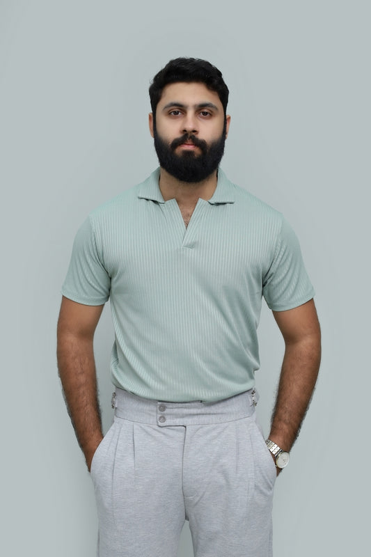 Drop Needle Mint Green Polo & Light Beige Relaxed Fit Trouser
