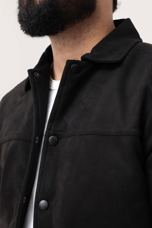 Sold outBLACK SUEDE BUTTON-UP JACKET