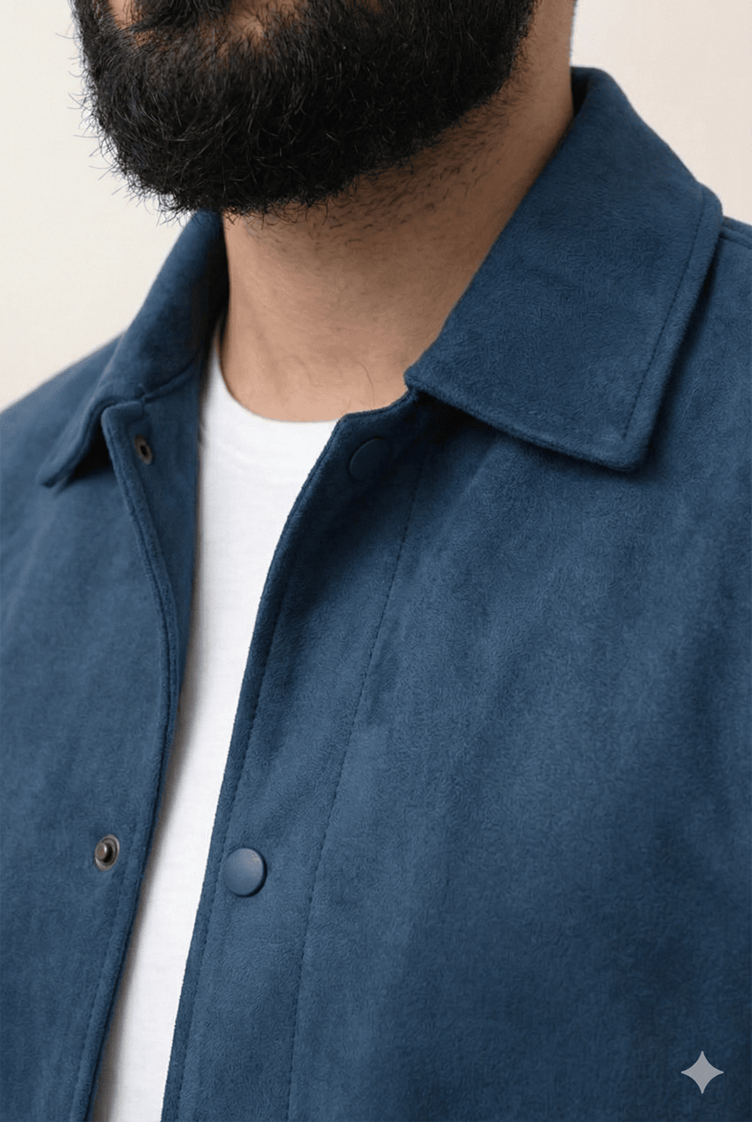 BLUE SUEDE BUTTON-UP JACKET