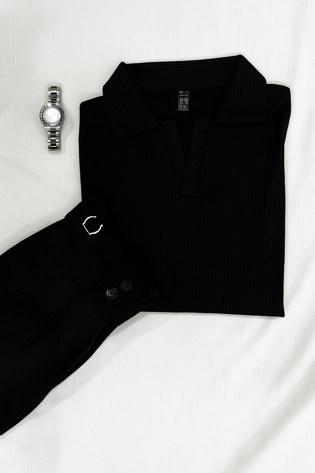 Drop Needle Black Polo & Black Gurkha Pants