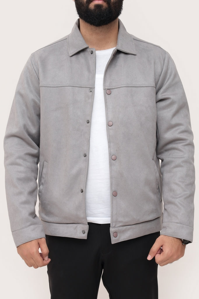 GRAY SUEDE BUTTON-UP JACKET